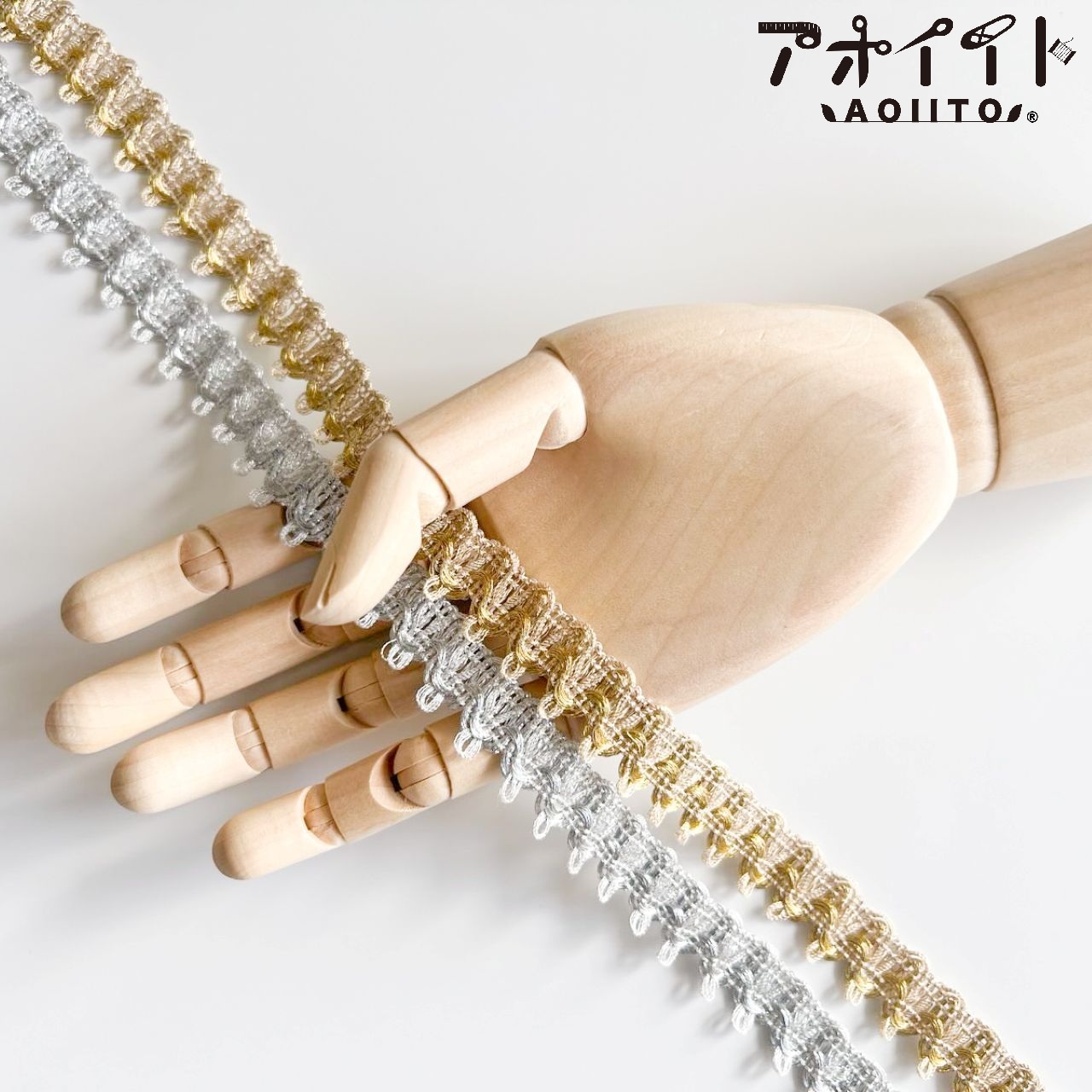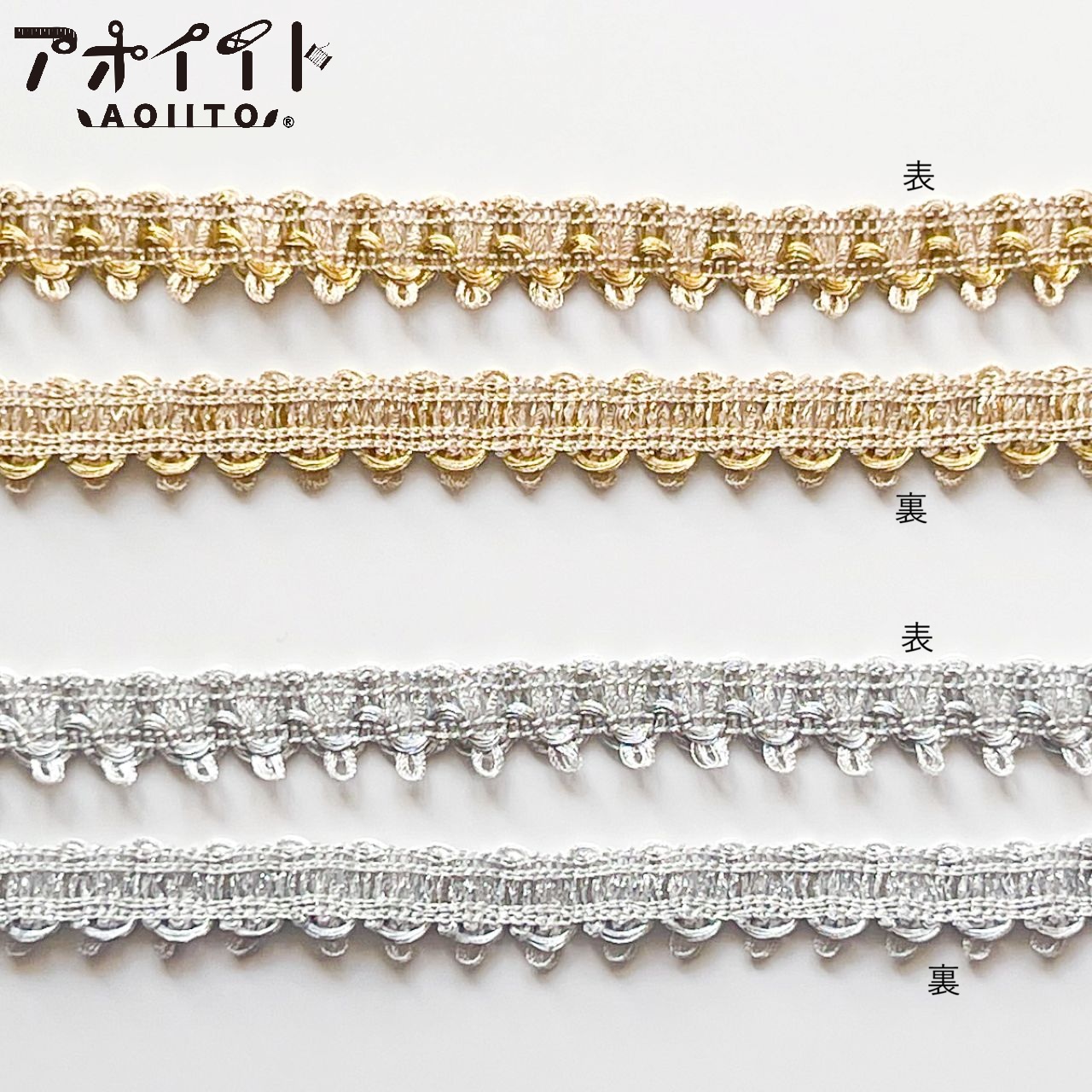 ・幅(最大):約18mm ・生産地:福井県《Made in Japan》 ・組成:レーヨン63% / ポリエステル37% ・カラー:ゴールド x ベージュ(金色)/ シルバー x シルバー(銀色)
