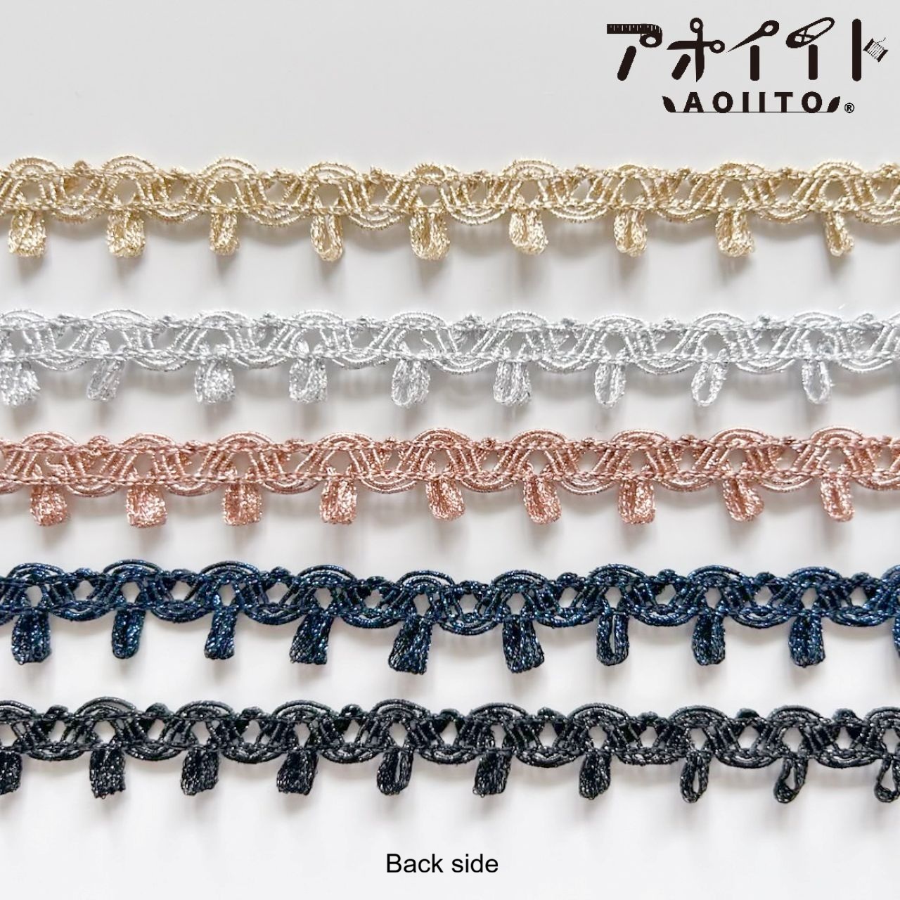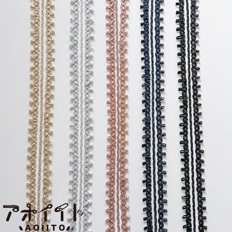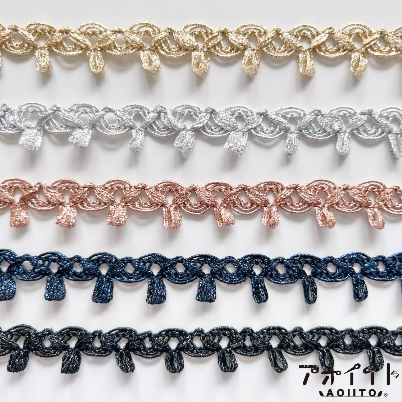 ・幅(最大):約15mm ・生産地:福井県《Made in Japan》 ・組成:レーヨン76% / ポリエステル24% ・カラー:ゴールドラメ / シルバーラメ / ピンクゴールドラメ / ネイビーラメ / ブラックラメ
